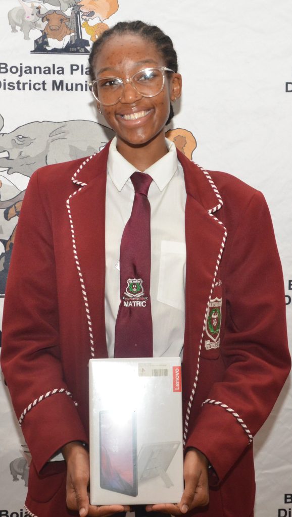 Among the top achievers is Reneilwe Morake (18) from Sandfontein, Moruleng, who achieved five distinctions and is now pursuing a BCom in Accounting at the University of Johannesburg. Reneilwe received a tablet to help support her studies.